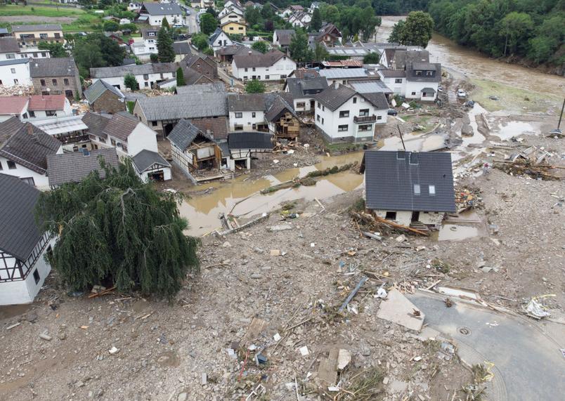 Armin Laschet, candidato conservador à sucessão de Merkel na eleição geral marcada para setembro e premiê do Estado de Renânia do Norte-Vestfália, duramente atingido pelas enchentes, culpou eventos climáticos extremos e o aquecimento global ao visitar a área.