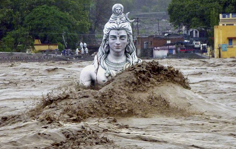O ministro do Interior, Rajnath Singh, sobrevoou as áreas mais atingidas, neste sábado, e disse que as enchentes eram “muito sérias”.