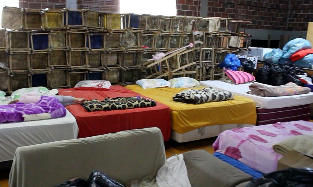 Muitos moradores do bairro Bela Aliança, em Rio do Sul, já partiram com a mudança para o abrigo. Na igreja luterana do bairro, cada família tem um espaço para guardar seus móveis e pertences. “Estamos eu, minha filha, meu genro, minha neta. A gente deixa tudo arrumadinho, limpinho. Como faz em casa, faz aqui também”, conta Gerceli Aparecida Szuta.