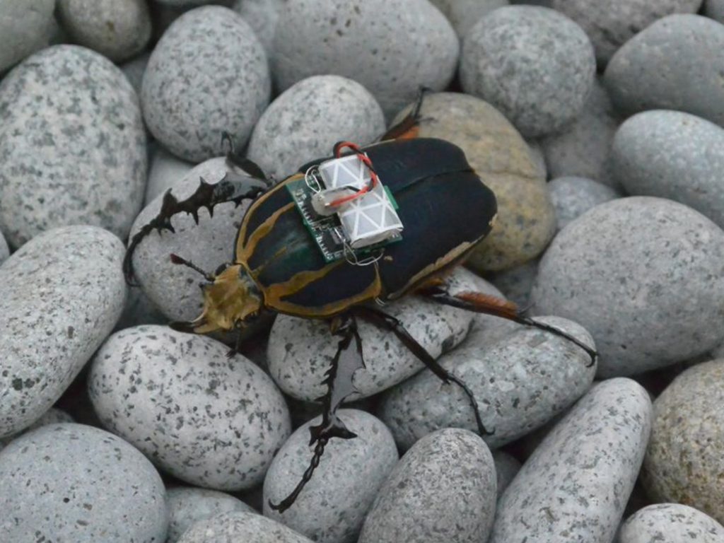 O objetivo é que os insetos possam ser guiados com um controle remoto para acessar áreas de difícil acesso após desastres naturais.