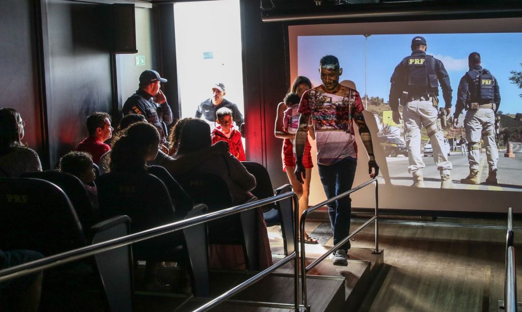 A Polícia Rodoviária Federal (PRF) realizou na segunda-feira (24), ações de fiscalização de veículos combinadas com educação para o trânsito, em comemoração aos 95 anos da instituição. Na unidade operacional da PRF na BR-020, em Planaltina, foi montado o Cinema Rodoviário, em um caminhão com capacidade para receber 45 pessoas.