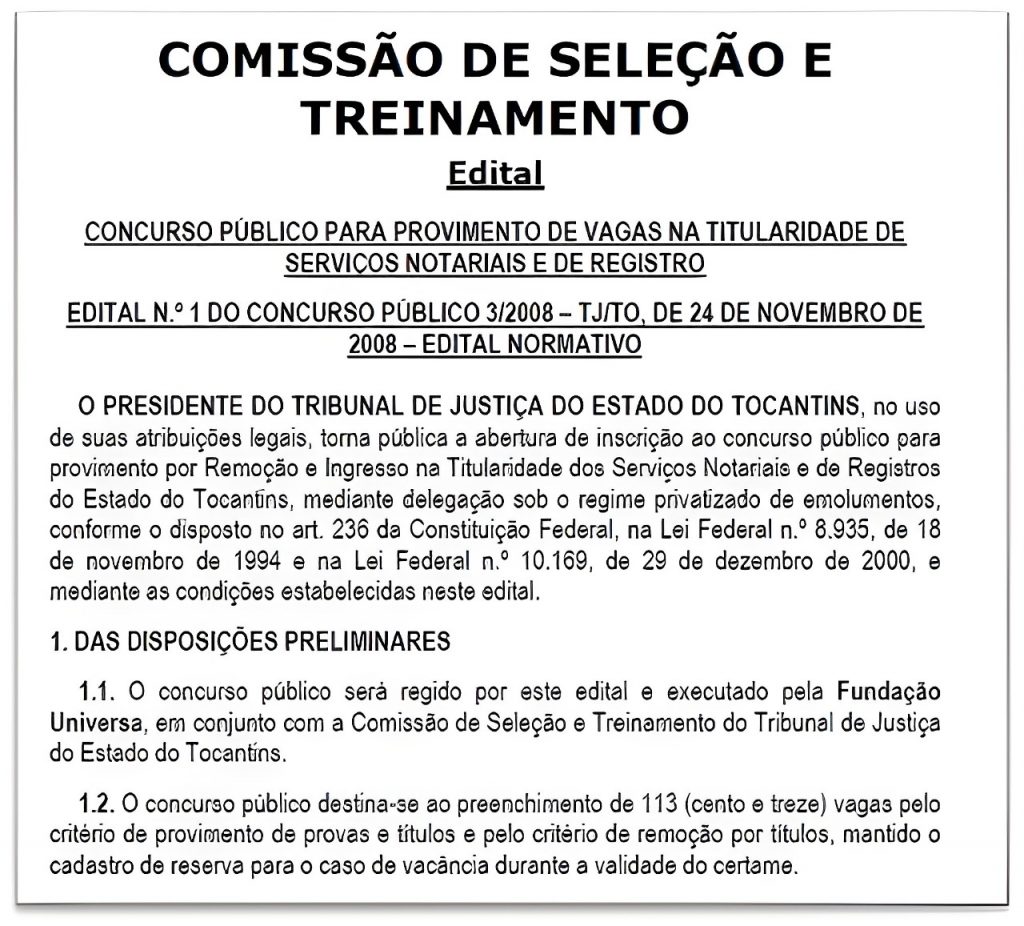 vii) Não há edital de abertura, classificações das publicações e todos os 4 delegatários indicados nas informações do TJ-TO, passaram em 1º lugar no concurso;