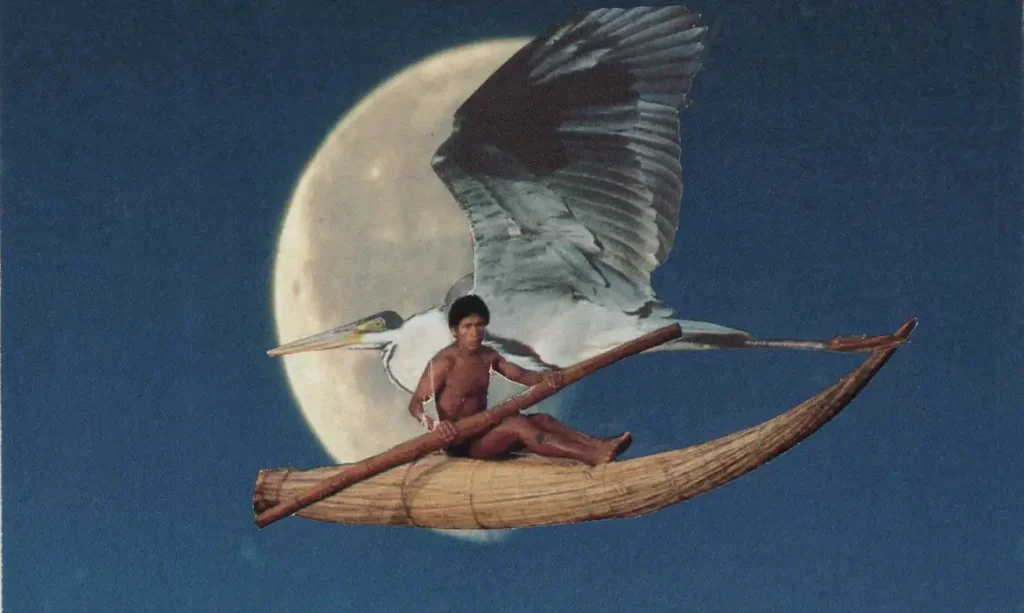 A colagista aymara esteve sempre em busca de imagens de indígenas, mas não queria qualquer uma. Deslocar indígenas de cenas de sofrimento para outras, nas quais sublimam tal condição, por exemplo, tornou-se seu propósito.
