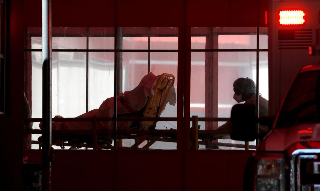 Corpos das vítimas de covid-19, doença respiratória semelhante à gripe, causada pelo novo coronavírus, foram empilhados em sacos laranja dentro de um necrotério improvisado do lado de fora do Wyckoff Heights Medical Center, no Brooklyn, de acordo com fotos fornecidas à agência Reuters.