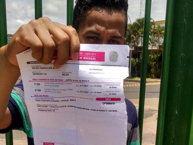 O estudante Amauri Rodrigues, de 18 anos, morador do Recanto das Emas, foi ao local da prova de carro, com o pai, mas chegou oito minutos após o fechamento dos portões da escola onde faria a prova. Ele saiu de casa duas horas antes do início da prova.