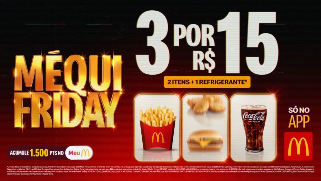 “Nosso objetivo com a Méqui Friday é oferecer experiências que unam conveniência, sabor e custo-benefício, valorizando quem escolhe o Méqui no dia a dia. E começamos a temporada de descontos com o pé direito, com um esquenta exclusivo para os clientes do Meu Méqui, cheio de ofertas imperdíveis”, comenta Ilca Sierra, Diretora de Marketing da Divisão Brasil da Arcos Dorados.