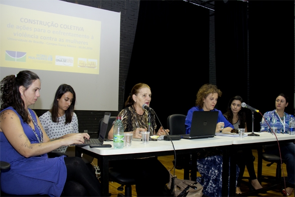 Participaram da mesa de abertura do evento a decana de Assuntos Comunitários, Thérèse Hofmann, as representantes da Diretoria da Diversidade (DIV/DAC) Inez Montagner e Sílvia Badim, a coordenadora do Núcleo de Estudos e Pesquisa sobre a Mulher (Nepem), Lourdes Maria Bandeira, a coordenadora de projetos do DCE, Helena Esteves, e a representante da ONU Mulheres Amanda Lemos.