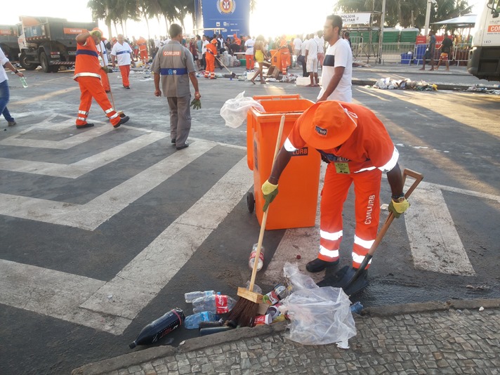 No dia 1º de janeiro de 2015, após a festa de réveillon,  a Comlurb contabilizou 680,83 toneladas de lixo retiradas das praias da cidade. Somente em Copacabana, local de maior concentração popular, foram 370,66 toneladas de lixo, seguindo-se Barra da Tijuca, com  89,78 toneladas.