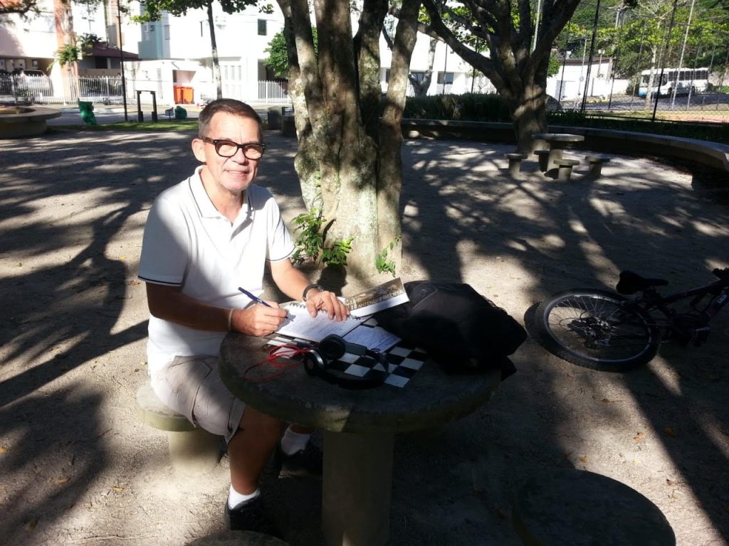 Essa cabana, na realidade, é apêndice de uma pousada na Guarda do Embaú, Santa Catarina. É lá onde ele escreve suas obras, com características próprias, recheadas, muitas vezes, de bom humor, ‘pois é assim que devemos viver’, afirma na entrevista a seguir: