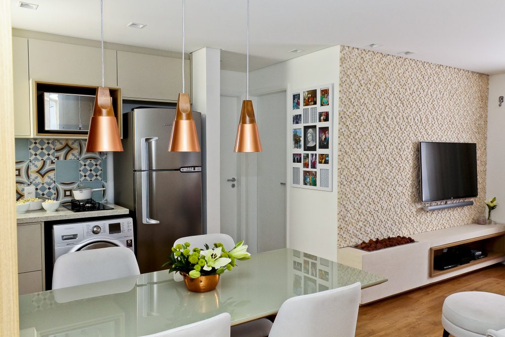 Sala de jantar, copa, varanda. Difícil imaginar que um time destes possa ter lugar garantido no projeto de um apartamento de apenas 34 m². Um luxo, aparentemente restrito, a imóveis de dimensões superiores, mas que ganhou vida nesse projeto, localizado em Higienópolis, na região central de São Paulo.