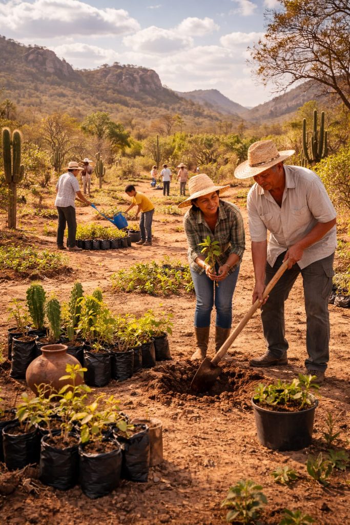 Nos últimos anos, projetos comunitários de reflorestamento começaram a ganhar força em várias cidades do sertão. Agricultores, estudantes e voluntários participam do plantio de espécies típicas da Caatinga, como o umbuzeiro, o juazeiro e o mandacaru, que são fundamentais para a recuperação do equilíbrio ambiental.