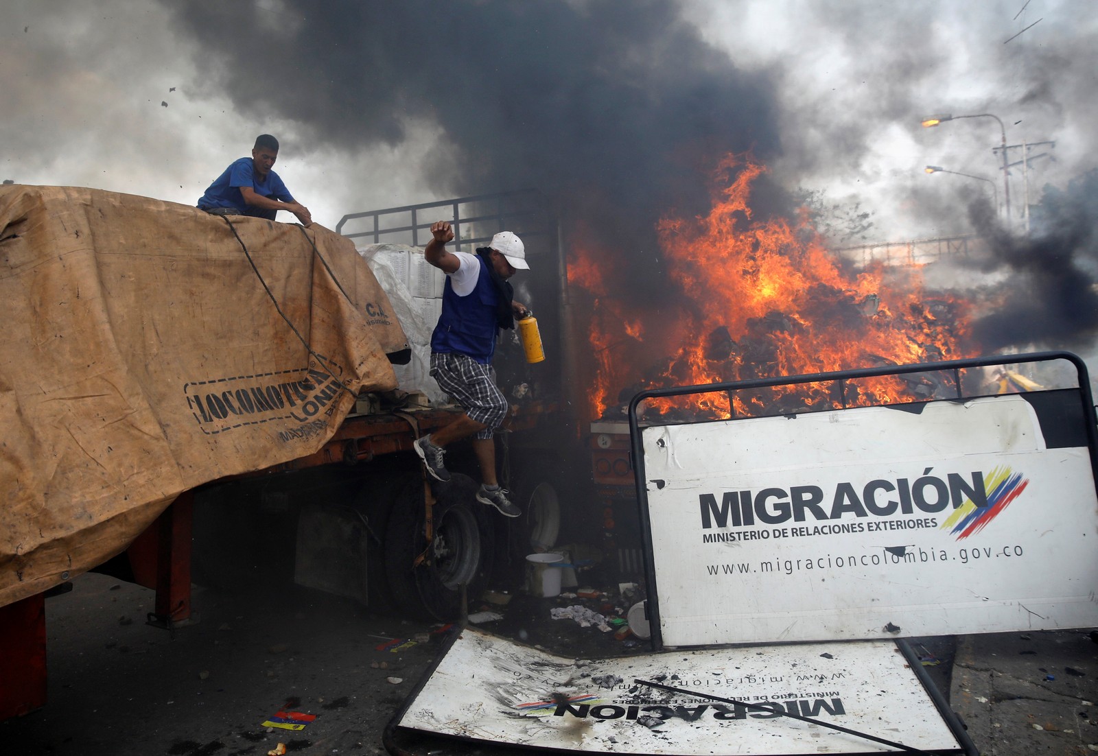 O governo de Roraima informou neste sábado (23) que dois venezuelanos morreram em confrontos em uma área perto da fronteira da Venezuela com o Brasil. O clima é de tensão na região fronteiriça. Forças de segurança venezuelanas bloqueiam a entrada de ajuda humanitária e manifestantes protestam para a entrada de alimentos e remédios no país.