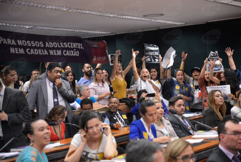 A audiência pública da Comissão de Constituição e Justiça (CCJ) da Câmara destinada a debater a admissibilidade da proposta de emenda à Constituição (PEC) que reduz a maioridade penal dos atuais 18 para 16 anos foi encerrada em função de tumultos envolvendo deputados e manifestantes. O presidente da CCJ, deputado Arthur Lira (PP-AL), chegou a alertar os deputados que, se os tumultos continuassem, ele encerraria a reunião da comissão.