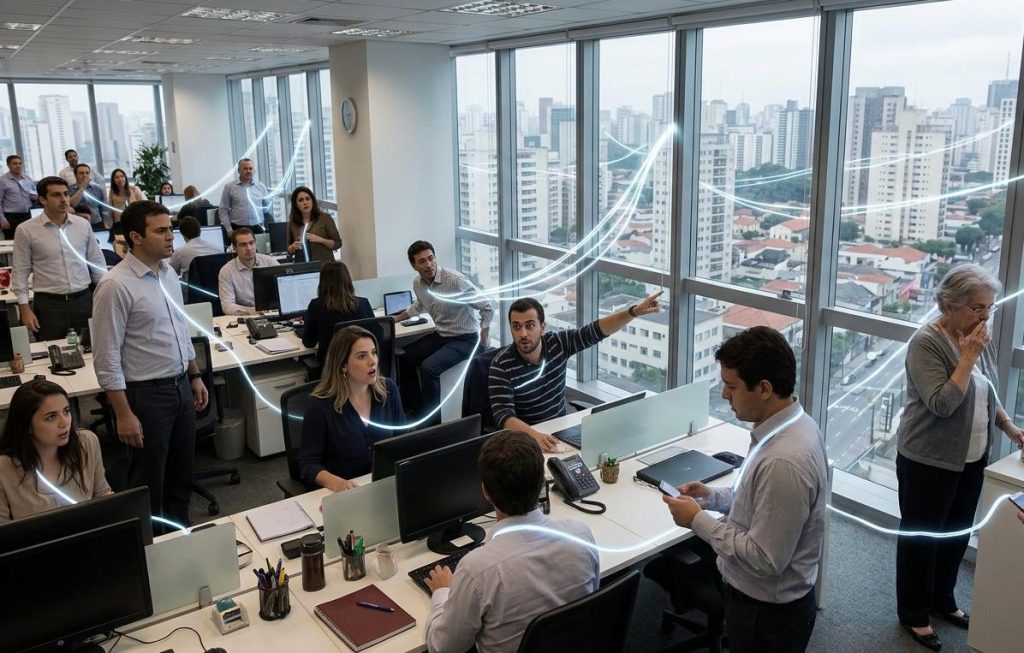 Foi numa segunda-feira, dia de briga, que a coisa aconteceu. Às 10 horas, tudo estava na mesmice habitual, pessoas trabalhando, outras reunidas em torno da máquina de café, muitos comentando a vitória ou derrota de seu time no fim de semana, o show a que assistiram, o de sempre, ao molho.