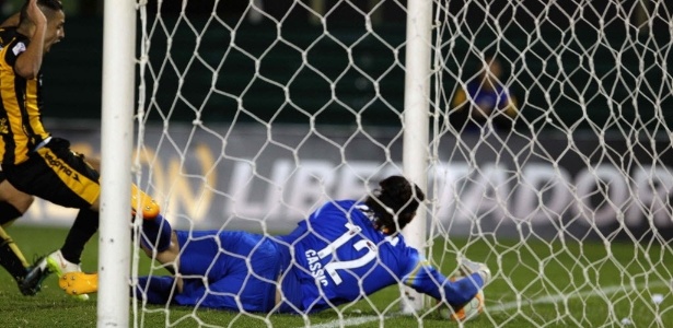 A pressão que se desenhava desde o fim do primeiro tempo acabou por dar a vantagem ao time da casa. Federico Santander, o mais perigoso do Guaraní, bateu falta aparentemente inofensiva, rasteira, de longe. Cássio, inteiro na jogada, deixou a bola passar por baixo de sua mão e viu ela lentamente ultrapassar a linha fatal. Foi um frango clássico a 16min a ponto de o próprio goleiro se desculpar.