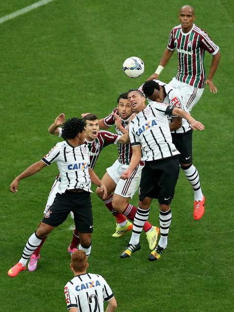 O Corinthians começou partindo para cima com velocidade, com destaque para Romarinho e Romero, que deixaram Luciano no banco de reservas. O paraguaio quase abriu o placar aos 26min, mas parou em um corte providencial de Diguinho. A resposta do Fluminense veio no final do primeiro tempo: Wagner entrou na área pela esquerda, cortou Gil e sofreu pênalti. Fred bateu com categoria, deslocando Cássio e calando as vaias em Itaquera.