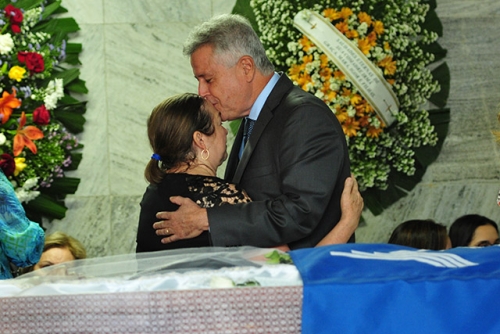 O governador Rodrigo Rollemberg esteve na cerimônia de despedida do amigo e cumprimentou Maria do Socorro, viúva de Francisco Ozanan.