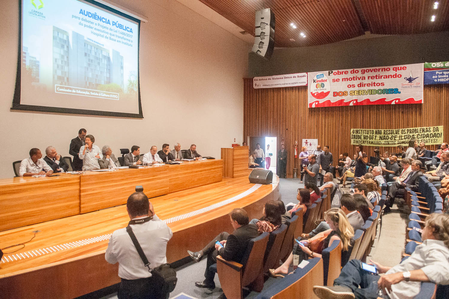O projeto de lei nº 1.486/2017, enviado pelo Poder Executivo para criar o Instituto Hospital de Base, foi debatido nesta segunda (10) na Câmara Legislativa em audiência pública realizada pela Comissão de Educação, Saúde e Cultura (CESC). A maior parte dos participantes rechaçou a criação do instituto, apontada pelo governo como uma saída para garantir a autonomia administrativa e financeira ao maior hospital do DF.