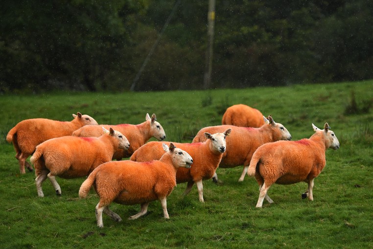Um rebanho de ovelhas teve o pelo pintado por seu proprietário, o inglês Pip Simpson. Ele decidiu pintar o pelo de suas ovelhas de laranja fluorescente para evitar roubos.