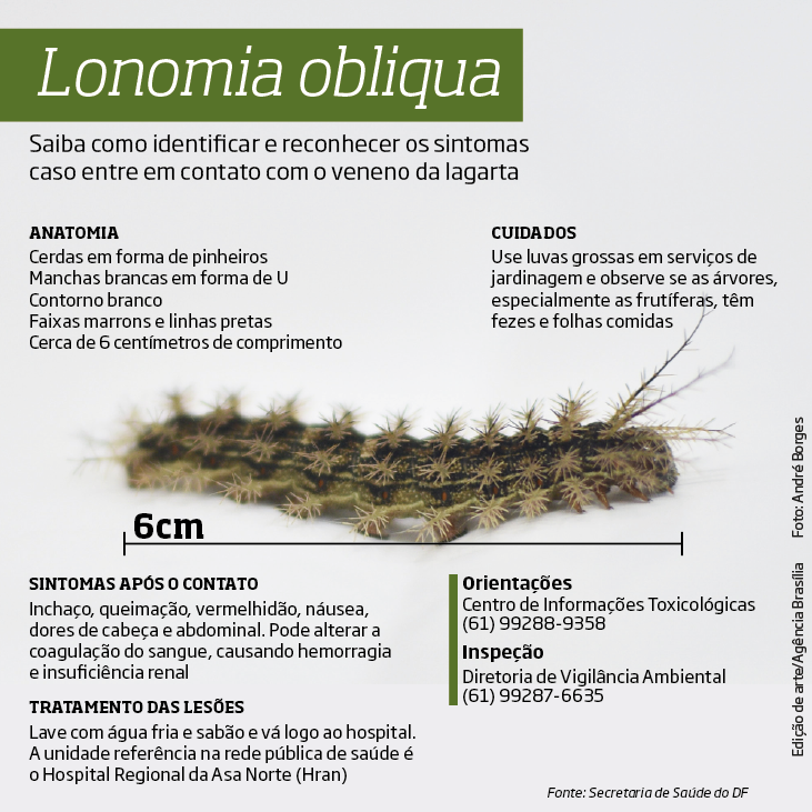 O Hospital Regional da Asa Norte (Hran) é a unidade da rede pública de saúde do Distrito Federal referência no tratamento de lesões causadas pelo veneno da Lonomia obliqua. Colônias da lagarta têm sido encontradas em algumas regiões do Distrito Federal, como Brazlândia, Lago Sul e Park Way.