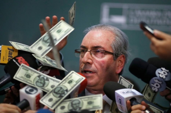 Cunha toma banho de notas falsas de dólares dado por militante encomendado, diz