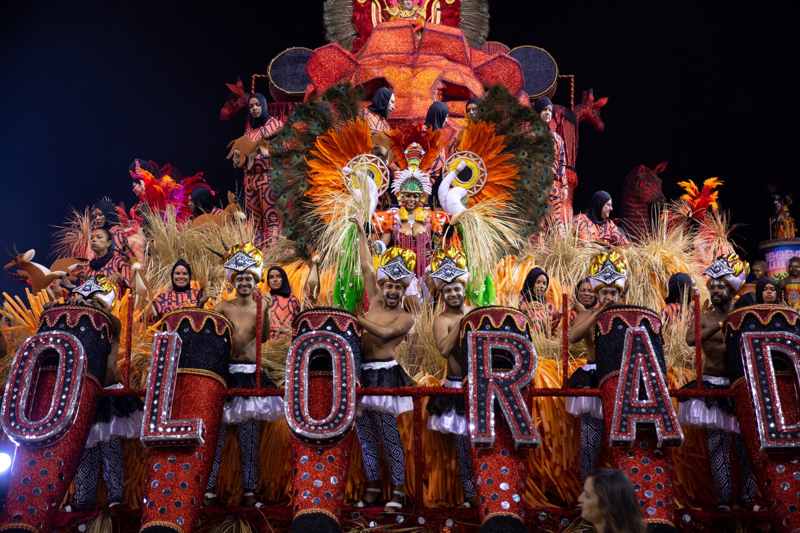 Com carros alegóricos que exploraram a diversidade da fauna e da flora da vegetação africana, a Colorado desfilou com as cores dos animais da savana, entre pássaros, macacos e leões.