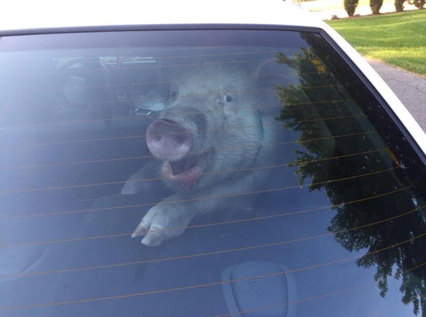 ‘Detido’ ao fugir do dono, porco faz cocô no carro da polícia
