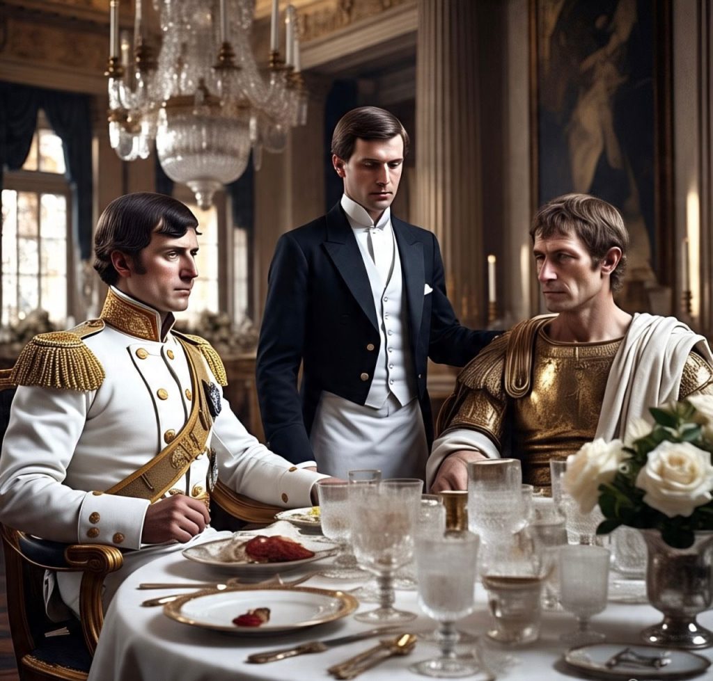 -Eu queria formar uma “família real Bonaparte” na Europa. Se os reis tradicionais podiam ter isso, por que eu não podia ter também? Até casei com a filha do imperador da Áustria, Maria Luísa… e tive um filho com ela, como sabes. Mas, tudo bem, admito que não deu certo!