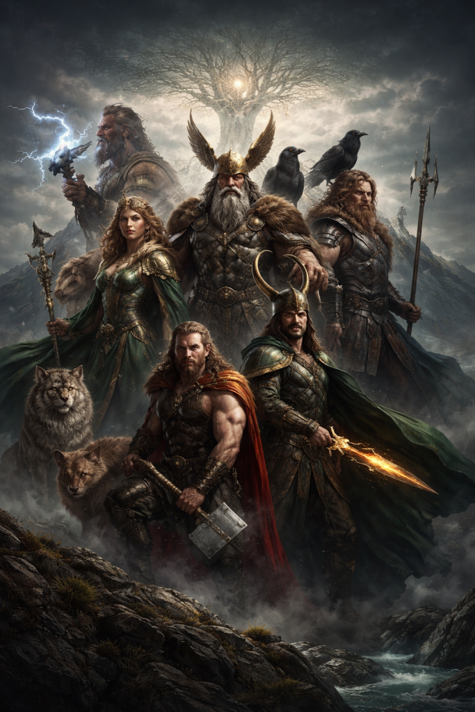 Os deuses da mitologia nórdica não são perfeitos nem eternos. Eles erram, sofrem, envelhecem e morrem. Justamente por isso, são profundamente humanos. Sua grandeza não está na imortalidade, mas na coragem de enfrentar o destino com honra.
