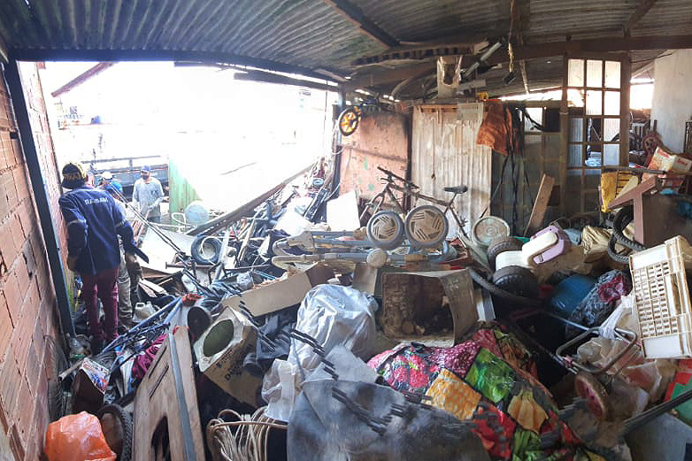 Em seguida, os reeducandos contratados pela administração iniciam a retirada do material, que segue para descarte em caminhão da Novacap. “Depois que a residência é limpa, é passado o fumacê, para matar o Aedes aegypti, já que nessas casas costumam ter focos do mosquito transmissor da dengue. Também é realizada a desratização”, explicou Gisele.