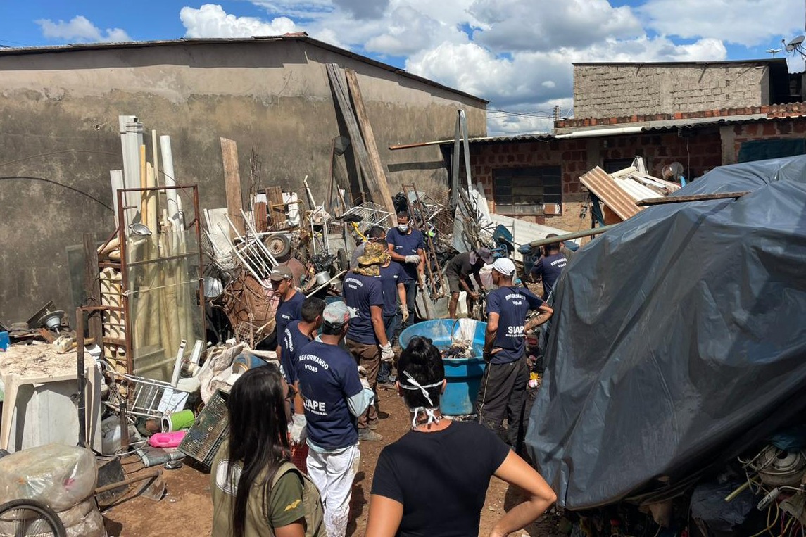 A atuação na casa dos acumuladores contou com uma grande equipe de agentes e servidores da Novacap, GDF Presente, Detran, Secretaria de Administração Penitenciária e Administração Regional. “Vínhamos tentando retirar o entulho da casa desses acumuladores e conseguimos”, acrescentou Telma Rufino.