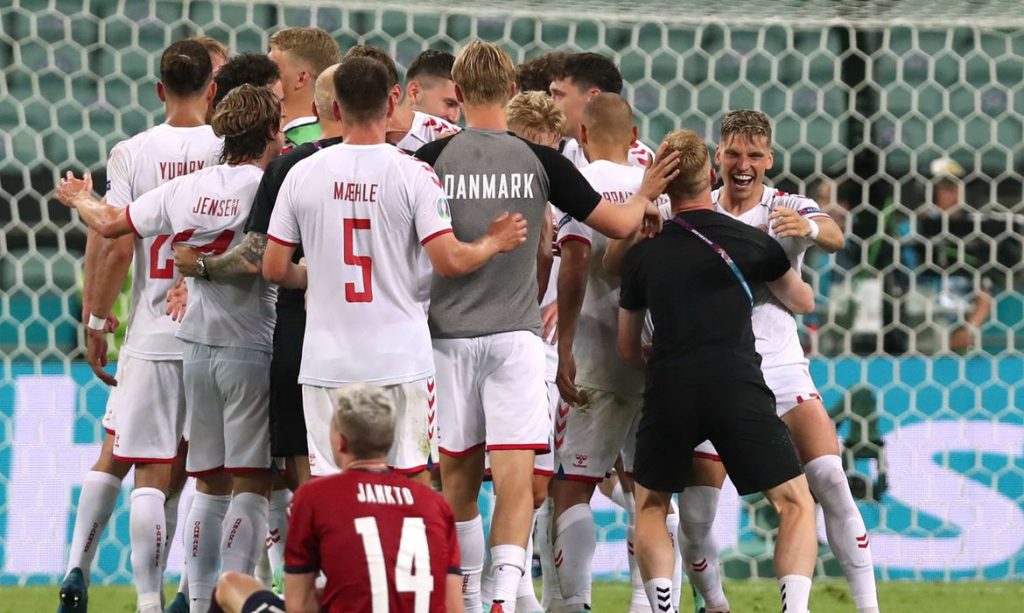 A Dinamarca abriu o placar aos cinco minutos, quando Thomas Delaney cabeceou para baixo em cobrança de escanteio, sem chance para o goleiro tcheco, e os dinamarqueses aumentaram a vantagem um pouco antes do intervalo, depois que Kasper Dolberg completou para o gol após cruzamento perfeito de Joakim Maehle.