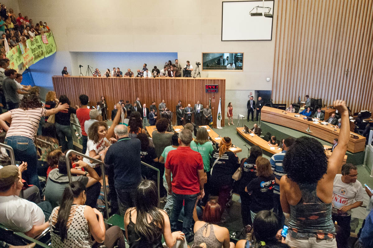 Adiamento – Houve esforços para adiar a votação. “Não há segurança jurídica para votarmos hoje (terça-feira)”, protestou Wellington Luiz (PMDB), apoiado por parte da galeria que pedia a retirado do projeto da pauta. Mesmo assim, o presidente da Câmara, Joe Valle (PDT) fez prevalecer o acordo firmado no dia anterior pelo colégio de líderes, para que a matéria fosse levada à apreciação do Plenário. O parlamentar chegou a colocar em votação uma proposta de adiamento, que foi derrubada, no voto, pela bancada do governo.