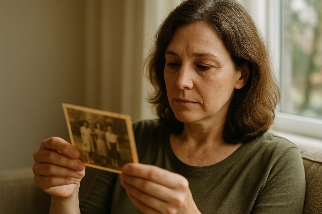 Gosto de observar esse gesto dela, quase ritualístico, de abrir uma caixa e se reencontrar com o passado. Uma fotografia amarelada pelo tempo não mostra só rostos; mostra também o instante exato em que a vida decidiu congelar um sorriso, um gesto, um encontro. E é bonito perceber que, de alguma forma, aquele pedaço de papel continua sustentando emoções que poderiam ter se perdido.