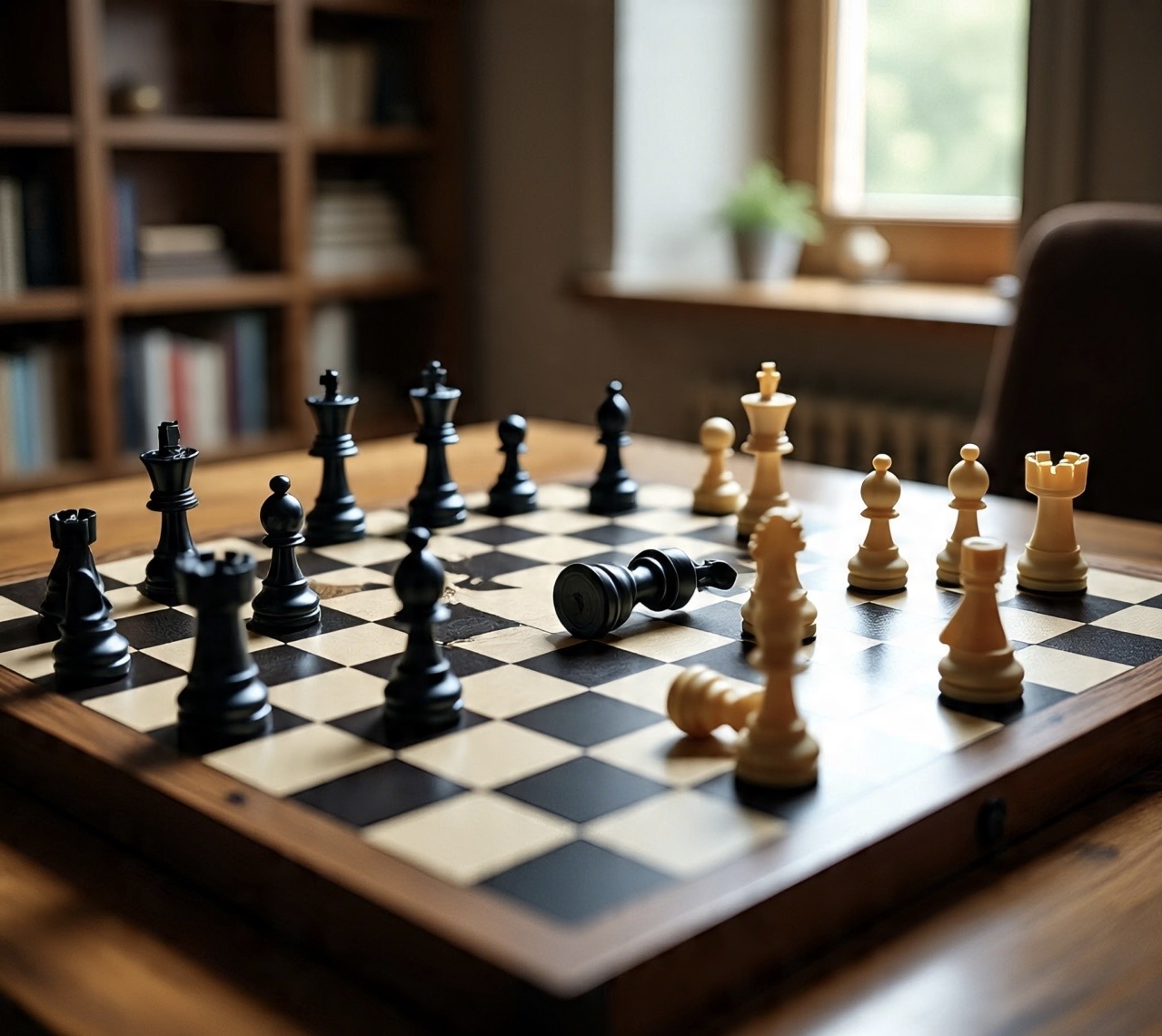 – Porra, cara, você colocou o rei preto na casa preta. Esqueceu da máxima Regina in colorem, a rainha na cor? Vamos ter de recomeçar essa bosta. Insisto no P4R. mas agora vê se joga direito, imbecil.