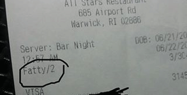 O dono de um restaurante nos EUA demitiu o proprio filho após ele ter identificado um cliente como “Gordinho” (Fatty) em um recibo impresso. O caso ocorreu em Warwick, no estado de Rhode Island.