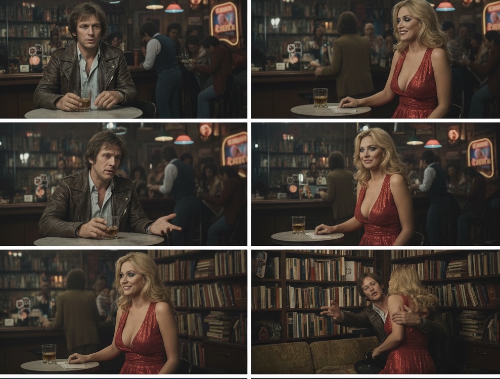 Certa noite, Douglas estava bebendo num barzinho quando ela entrou. Era uma loura num vestido decotadíssimo, que lhe deu uma olhada de levantar defunto. “Não tô com essa bola toda”, pensou. “Deve ser uma profissional procurando cliente”. Mas era gostosa, maior de idade e respirava, então chegou junto pra ver qual era.