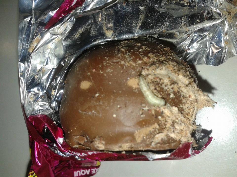 Motivo? Ação por perdas e danos morais por sentir o gosto repugnante de larvas na sua boca. A consumidora exigiu (e recebeu) a devolução de 99 centavos pagos pelo bombom. E deve receber outros 1 mil 500 reais, por danos morais.