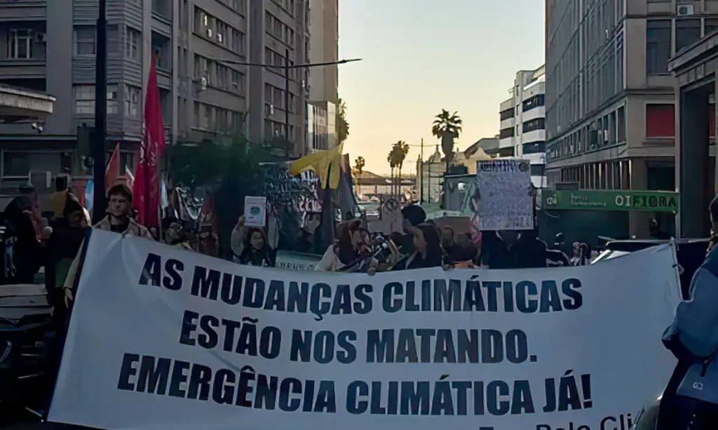 A organização não governamental (ONG) Eco Pelo Clima realizou nesta sexta-feira (31), em Porto Alegre, marcha de protesto, dentro do movimento global sobre o tema. Durante o evento, os manifestantes afirmaram que as enchentes que assolaram o Rio Grande do Sul desde o fim de abril são fruto do descaso dos governantes, quem classificaram de “negligentes e incompetentes”. Eles se referiam ao governador Eduardo Leite e ao prefeito da capital, Sebastião Melo.