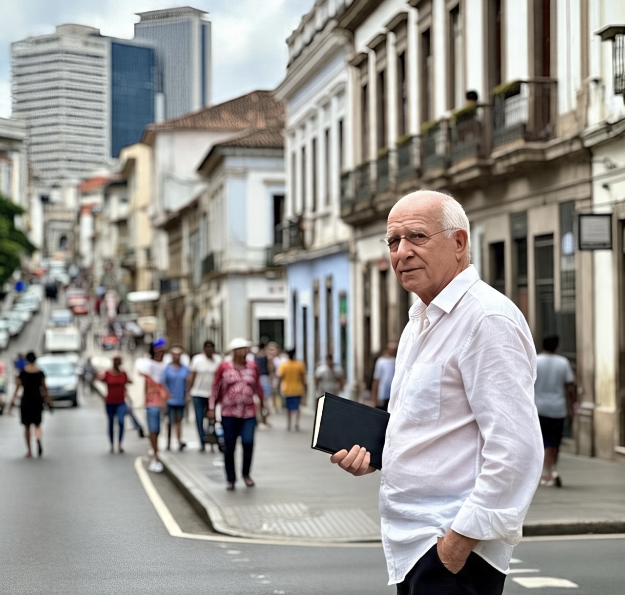 “É, a morte transforma os viventes”, pensou Otávio, que era escritor e adorava brincar com palavras. Depois lembrou que o amigo falecido era de família evangélica. “Vai ver que, depois de bater as botas, ele foi docemente constrangido a retomar a crença de seus pais”, pensou o sonhador. “Mas daí a pregar em uma esquina há uma enorme distância”.