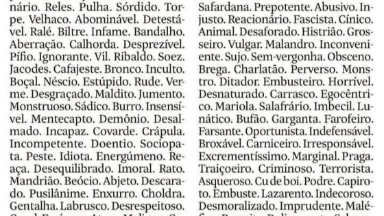 Mariliz Pereira Jorge deu uma aula, em sua coluna no Uol, sobre sinônimos e adjetivos para pequi roído. O título da coluna é Bolsonaro. O texto...