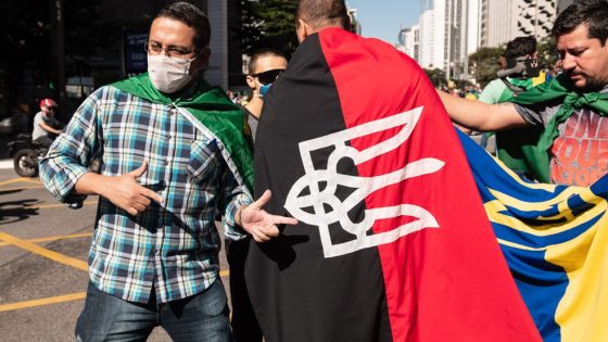 Diplomatas russos manifestaram incômodo com o surgimento, entre manifestações de grupos bolsonaristas, de símbolos da extrema-direita ucraniana. Trata-se de uma bandeira vermelha e preta, com um...