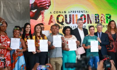 Lideranças quilombolas presentes no encontro Aquilombar 2024, em Brasília, cobraram o governo federal sobre o que consideram como lentidão do processo de titulação dos territórios das...