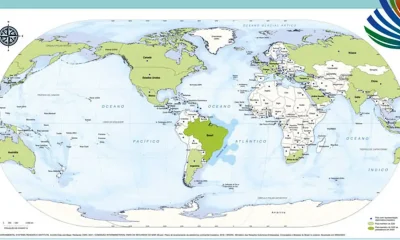 O mapa-múndi produzido pelo Instituto Brasileiro de Geografia e Estatística IBGE) que tem o Brasil no centro estará disponível para venda, a partir desta terça-feira (16),...