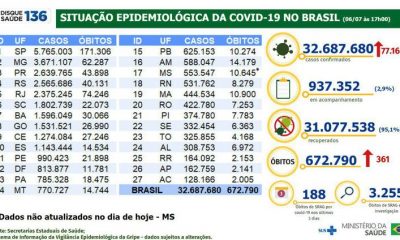 As secretarias estaduais e municipais de saúde registraram 77.166 novos casos de covid-19 nas últimas 24 horas em todo o país. De acordo com os órgãos,...