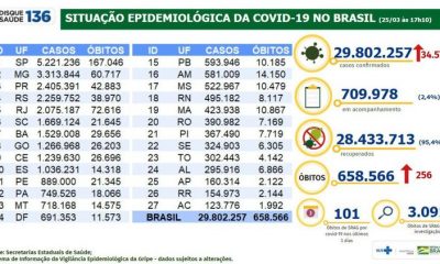 O Brasil registrou, desde o início da pandemia, 658.566 mortes de covid-19, segundo o boletim epidemiológico divulgado neta sexta (25) pelo Ministério da Saúde. O número...