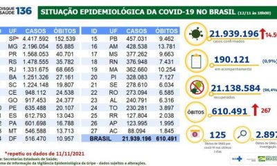 As autoridades públicas de saúde contabilizaram 610.491 vidas perdidas desde o início da pandemia. Nas últimas 24 horas, os órgãos de vigilância em saúde registraram 267...