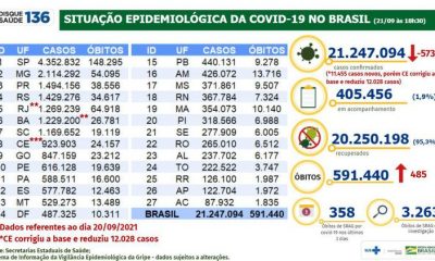 O balanço diário de casos de covid-19 do Ministério da Saúde apontou 573 diagnósticos a menos confirmados que os dados divulgados na véspera. Com isso, o...