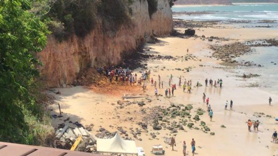 Um casal e uma criança morreram nesta terça (17), ao serem atingidos pelo desmoronamento de parte de uma falésia, na praia de Pipa, em Tibau do...