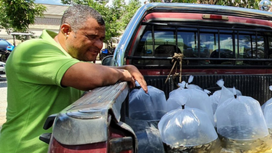 Cento e dez mil alevinos, 90 mil de tambaqui e 20 mil de tilápia, foram distribuídos para associações comunitárias de quatro municípios do Médio São Francisco...